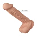 Dildo realista de gran tamaño con forma anatómica, textura venosa, glande pronunciado y testículos suaves, con base de ventosa para uso manos libres.